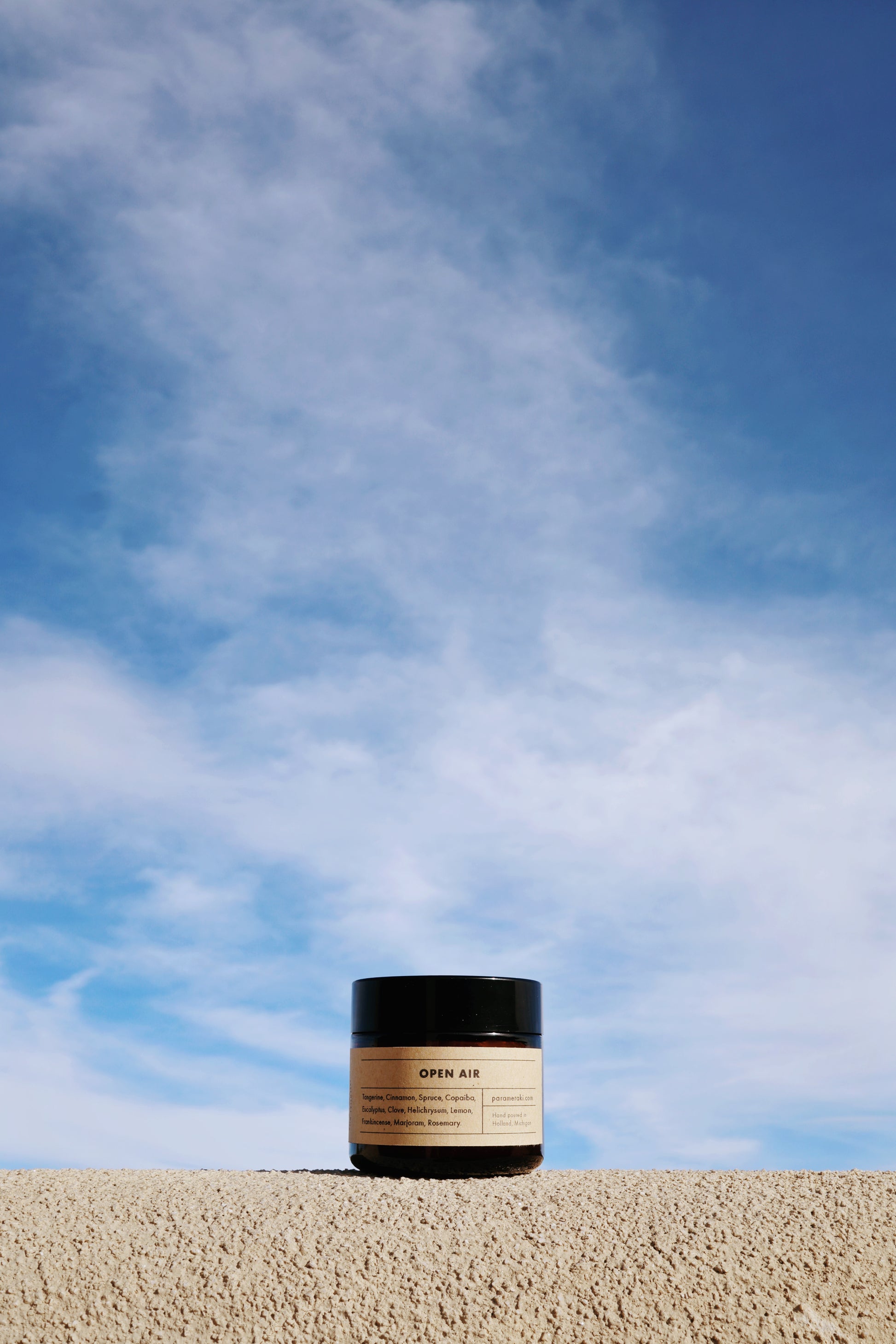 Open Air Scent Ingredients: Tangerine, Cinnamon, Spruce, Copaiba, Eucalyptus radiata, Clove, Helichrysum, Frankincense, Lemon, Marjoram, Rosemary.